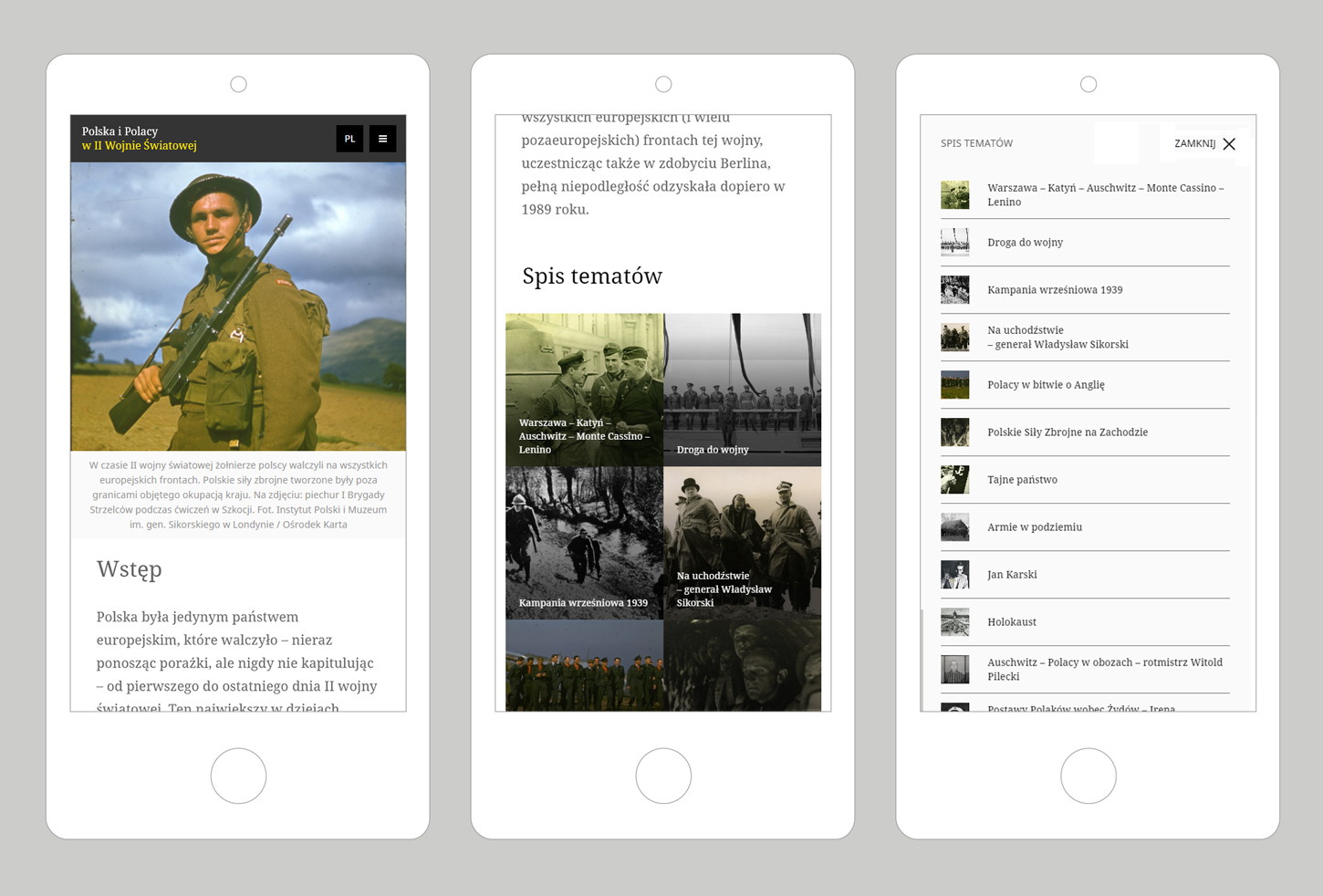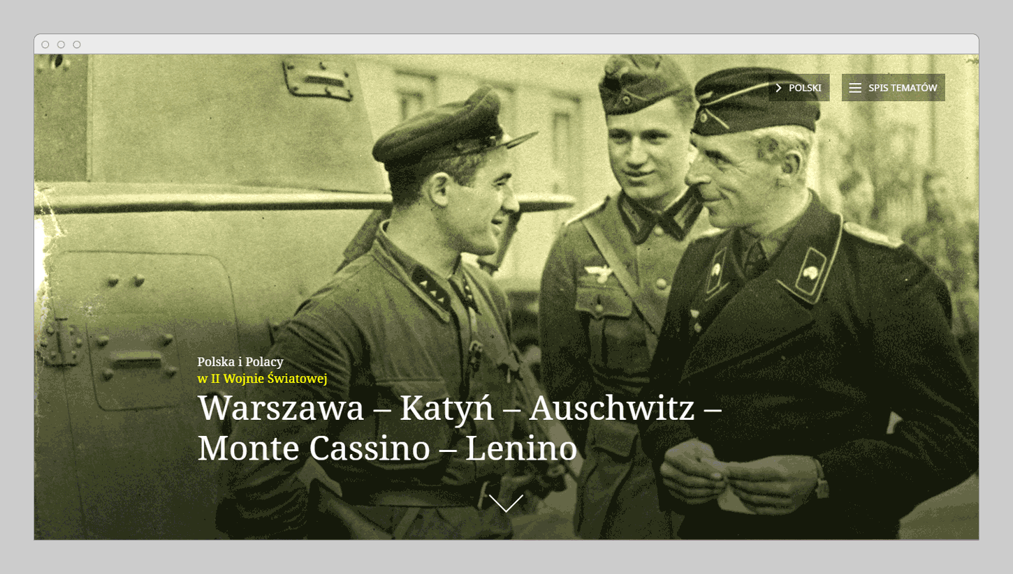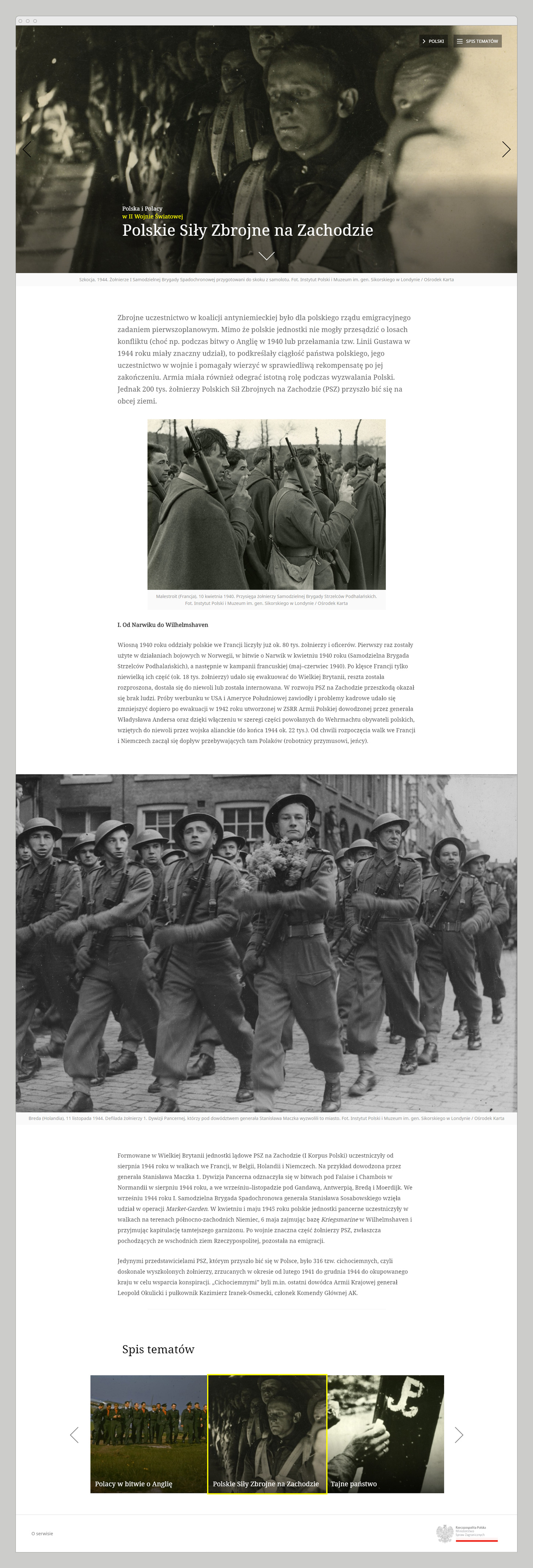 Serwis internetowy „Polska i Polacy w II wojnie światowej” powstał w ramach obchodów 70. rocznicy zakończenia II wojny światowej na zlecenie Ministerstwa Spraw Zagranicznych. Teksty opracował prof. dr hab. Jerzy Kochanowski z Instytutu Historycznego UW we współpracy z Domem Spotkań z Historią. Ilustracje zdjęciowe pochodzą m.in. z Instytutu Polskiego i Muzeum im. gen. W. Sikorskiego w Londynie, które do tej pory były rzadko publikowane. Zobacz stronę